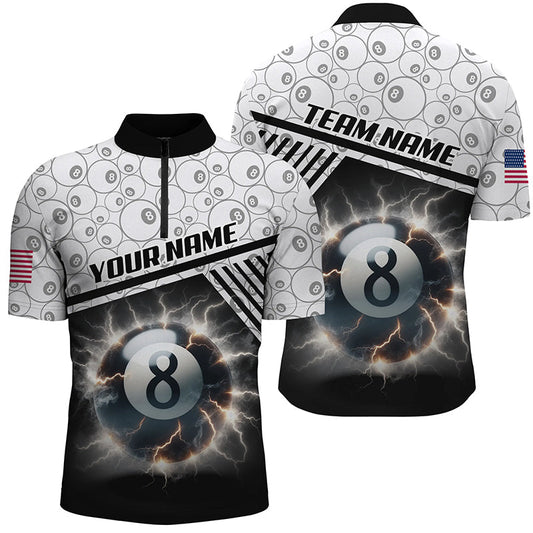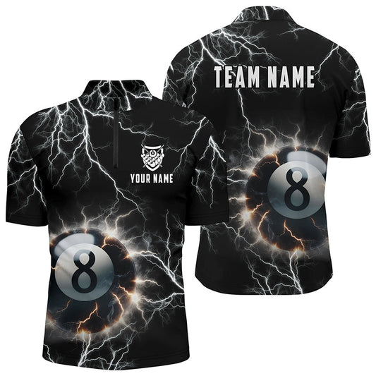 Personalised 3D Thunder Lighting Billiard 8 Ball Quarter-Zip Shirt for Men V1011