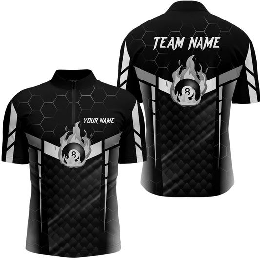 Personalised 3D Fire Billiard Quarter-Zip Shirt for Men V0243
