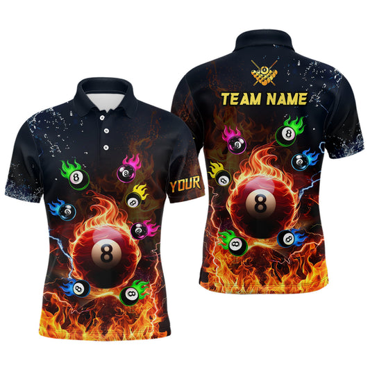 Personalised 3D Fire 8 Ball Men’s Polo & Quarter-Zip Billiard Shirts T1770
