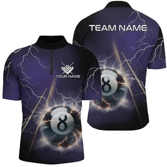 Personalised Purple 3D Thunder Lighting Billiard Quarter-Zip Shirt for Men V1029