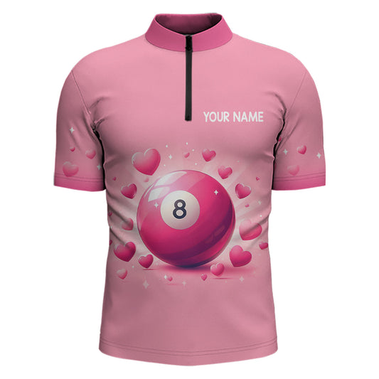 Personalised Pink 8-Ball Billiard 3D Quarter-Zip Shirt for Men V0963