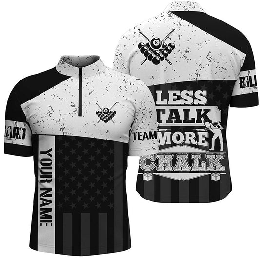 Personalised Less Talk More Chalk Billiard Men's Quarter-Zip Shirt T0648