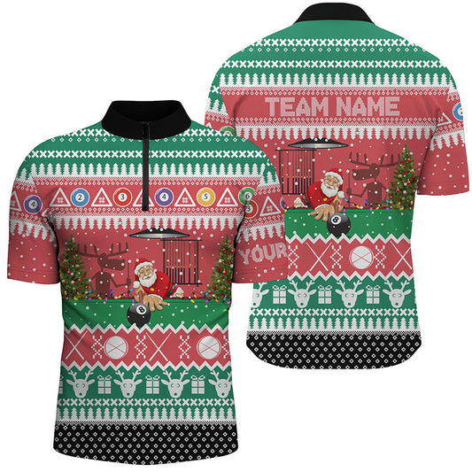 Personalised Santa Billiards Men’s Quarter-Zip Christmas Shirt T0521