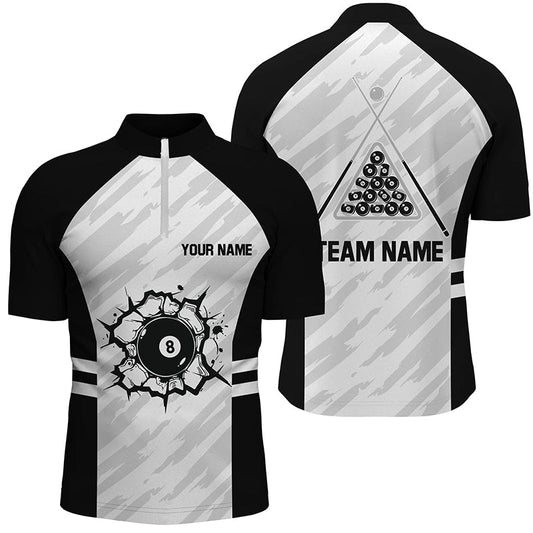 Men's 3D Black & White 8 Ball Billiard Quarter-Zip Shirt V1055