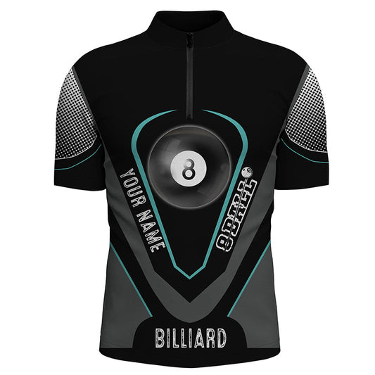 Men's 3D Billiard Player Quarter-Zip Shirt with Custom 8 Ball Design V0246