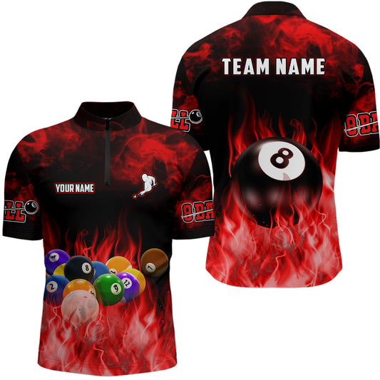 Men's 3D Printed Quarter-Zip Billiard Shirt - Fire & Water 8 Ball Theme T1118