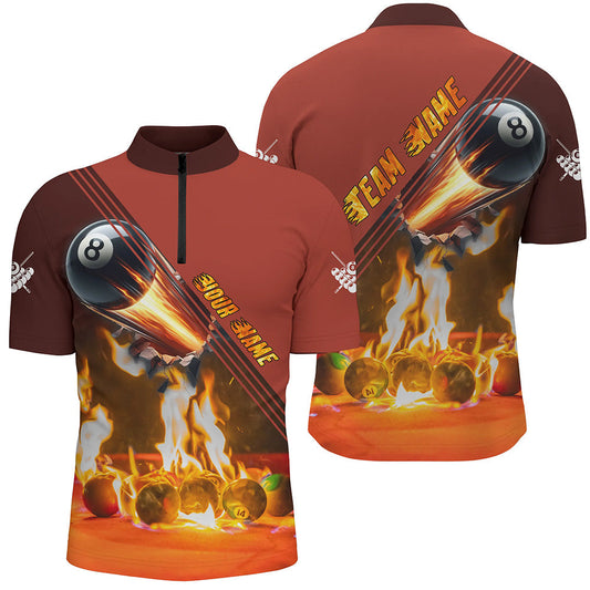 Men's 3D Fire Billiard 8 Ball Quarter-Zip Shirt T1206