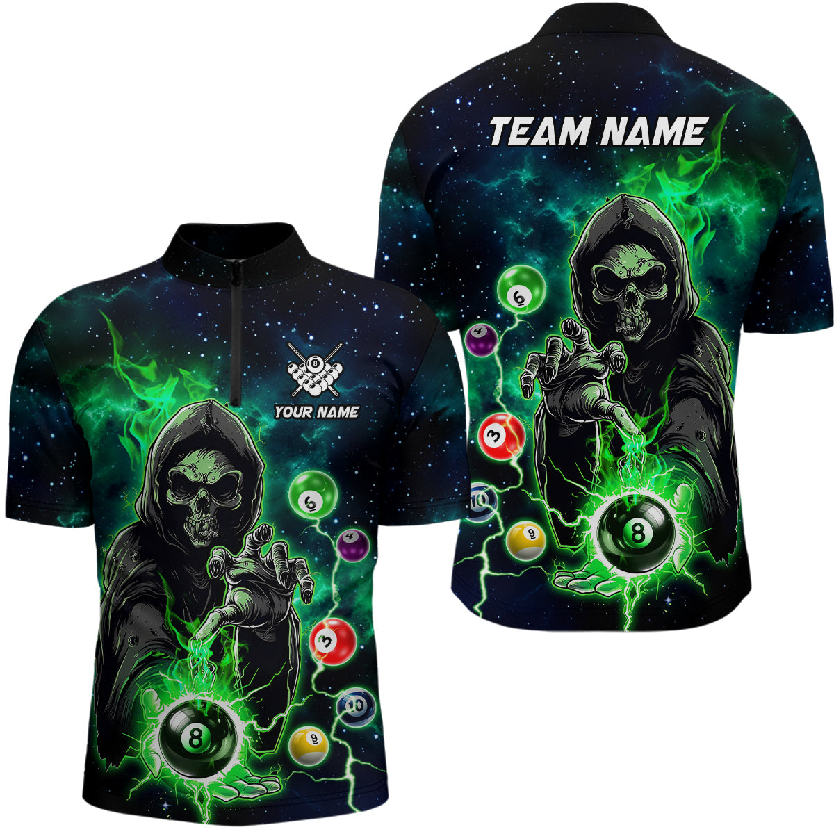 Green Billiard Skeleton Men’s Polo & Quarter-Zip Jerseys T1752