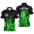 Green Flaming 8 Ball Pool Men's Polo & 1/4 Zip Shirt T2436